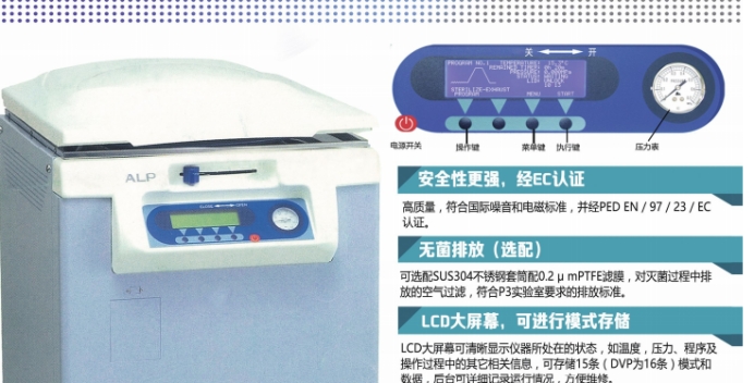 日本ALP原装进口的 CL及CLG 各系列都能满足105-137℃(32L型可以满足140℃)灭菌的要求。