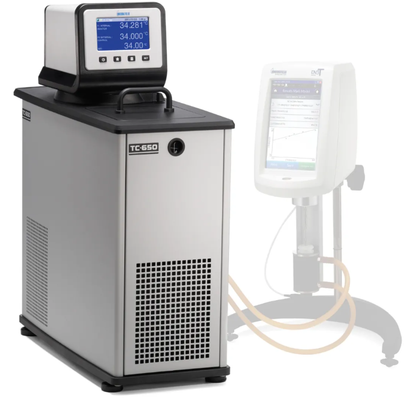 用量筒称量16mL的样品至样品杯中,使用配套转子进行粘度测量,连接粘度计主机和TC-650 SD 水浴循环系统。在Rheocalc T 软件上编辑相应的测试程序。