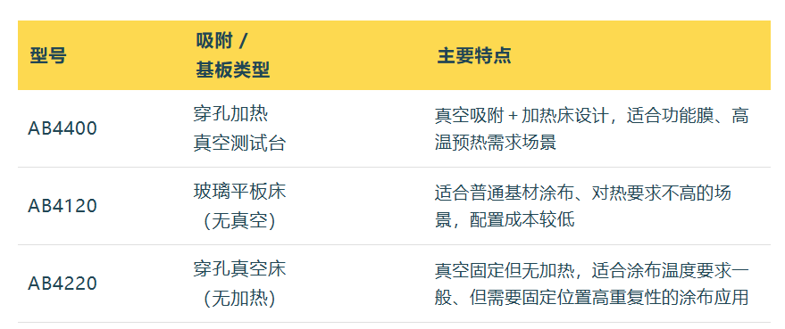 随着新能源技术飞速发展,从锂电池隔膜、功能涂层膜,到高性能薄膜材料,越来越多的工艺对涂层厚度、均匀性、重复性提出严苛要求。传统的手工涂布方式往往存在操作不稳定、厚度波动大、样本一致性差等问题。在这种背景下,自动化、可控化的涂布方案正成为研发与质控的关键工具。 作为工业物理旗下TQC Sheen品牌的旗舰涂布设备,AB4400自动涂布机配备加热穿孔真空床、数字温控、0.1 – 500 mm/s 涂布速度,以及全面参数可控的涂布机制,专为制备高质量、可重复的涂样而设计。 新能源研发 为什么需要 AB4400 在新能源材料与高透膜技术快速演进的时代,从锂电池隔膜到功能性薄膜涂层,每一次涂布都可能影响后续的透湿、耐候、附着等性能指标。因此,实现涂布过程可重复、可量化、可追溯,便成为研发和质控环节必须攻克的关键环节。而AB4400,正可以很好滴实现—— 均匀涂布,提升数据可靠性: 借助真空固定、轨迹速度可控、起止位置精确设定,AB4400在整个涂布区域内实现厚度均一,显著降低因人为操作造成的误差。 加热真空床,适应功能膜材料: AB4400的涂布平台可升温至环境温度 +100 °C(最高可达 125 °C),吸附孔径仅1mm,适配热敏基材或需预热的涂布工艺,如太阳能薄膜、隔膜涂层等。 高通量、小批量均适用: 自动化操作不仅加快样本制备速度,也使得从配方筛选、工艺验证、到质控抽样都可在统一设备上完成,兼顾研发与生产支持。 实验室-质控一体化: 在研发阶段可用于工艺参数优化,而在生产前段或质量控制环节,也可作为标准化涂样制备设备,为后续测厚、透湿、耐候测试等提供一致样本基底。 研发到质量控制 AB4400 全覆盖 在涂层研发与质量控制中,高标准意味着必须兼顾国际标准、行业规范以及内部一致性管理。AB4400 在这一流程中可实现: • 符合如 ASTM D823 等涂布标准,从源头保证涂布有效性; • 自动保存涂布参数(速度、起止位置、温度、真空状态)并可复用设定,实现设备间、批次间的参数一致; • 形成标准化的涂布流程,从而构建从样本制备、质控抽样、性能评估的完整流程,让涂层研发与质控环节衔接无缝。 在这个过程中,研发团队可专注于材料和配方创新,而生产或QC团队可依托统一的涂布平台保障样本一致,减少“涂布差异”这一变量。 型号区别与对比 AB4400 与 AB4120 / 4220 为了适应不同实验室配置或涂布需求,TQC Sheen 自动涂布机线还有其他型号可选,以下是主要区别概览: 根据具体应用场景(如新材料研发 vs 标准涂层质控)、基材类型、是否需要加热、预算条件,可选择适合您的型号。 关于真空测试台 涂布的一体化保障 在新能源膜材料和高透湿涂层的研发中,样品制备往往面临这样几个挑战:基材稳定定位难、涂布板面微位移引起厚度波动、热敏基材或薄膜在涂布过程中受热不均、以及涂布过程中因振动或晃动产生瑕疵。AB4400 所配备的穿孔真空吸附床,正是专为解决这些问题而设计。 稳定吸附,消除基材移动 真空床能将薄膜、基板或涂布板牢固吸附于平台上,在涂布过程中有效防止基材因振动、手动操作或滑动带来的微偏移。这样一来,涂布滚动条或刮刀在起始位置与终止位置保持一致,从而保证涂层厚度变化更可控、更重复。 加热+真空二合一,适合功能薄膜涂层 真空床不仅提供吸附,还内置加热垫,可将基板温度提升至环境温度 +100 °C(最高可达 +125 °C)。对于如锂电池隔膜、功能性薄膜涂层、太阳能薄膜封装层等,预热基材或在热态涂布往往能提升附着性、改善涂层成膜质量、降低缺陷率。此时,加热+真空双功能使得 AB4400 在新能源涂层研发中格外适用。 此外,AB4400 吸附孔径仅 1 mm,不会因为吸附而对薄膜造成影响导致涂布不均匀,在确保吸附平整的同时,不对膜材料造成伤害。 厚度一致性提升,优化后续测试流程 在涂布完成后,后续的厚度测量、透湿或透气测试、热循环测试都基于样本的一致性。真空床稳定吸附、秒级定位以及可编程轨迹控制(速度、起止位置)让样本制备重复性显著提升。这样研发人员可以把精力放在材料、配方、涂层结构本身,而不必担心涂布造成的变量干扰。 简而言之,真空床是涂布制样环节的基石,而 AB4400 正是将真空床与自动轨迹涂布、高温控制等集于一身的解决方案。