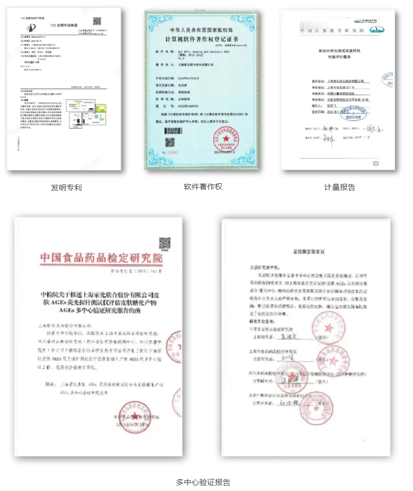 更重要的是,AGEScan Lite 已经过中国计量科学研究院的专业计量认证,并通过了中国食品药品检定研究院、上海市食品药品检验研究院等四家机构的多中心验证,为皮肤糖化水平检测提供了科学有效的测试设备,形成了化妆品抗糖在体测试的标准方法,为化妆品抗糖化功效宣称提供了科学可能性。
