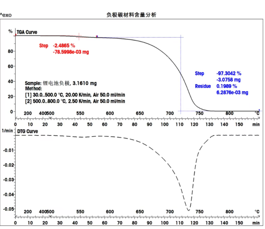 锂电池负极材料大都由碳材料组成,此外,还有少量粘结剂和导电剂。因此,在锂电池负极材料碳含量的测定中,一般可采用二次升温法,第一次在惰性气氛中除去有机物,第二次在氧化性气氛中测定碳含量;或者可在空气气氛中采用一次升温法测定有机物和碳的含量。