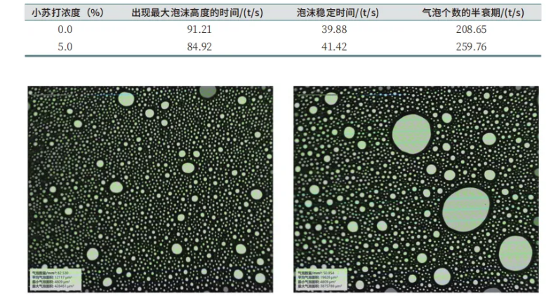 图2 DFA100泡沫分析仪评价小苏打添加对洗涤剂泡沫结构的影响