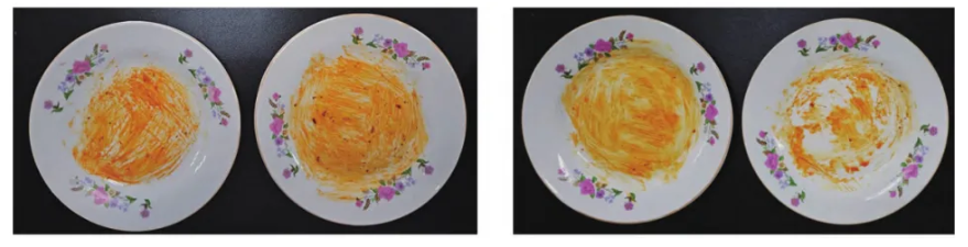 更难得的是,小苏打带来的泡沫升级,可不是“华而不实”的虚泡,而是和去污力强强联手的“实用泡”。同样是5.0%的小苏打添加量,洗涤剂的去污力直接提升17%,对付火锅底料这类重油污,泡沫能带着小苏打的清洁力,快速中和油渍中的酸性成分、分解油脂,让油污轻松从餐具表面剥离,泡沫丰富的同时,清洁力也拉满。